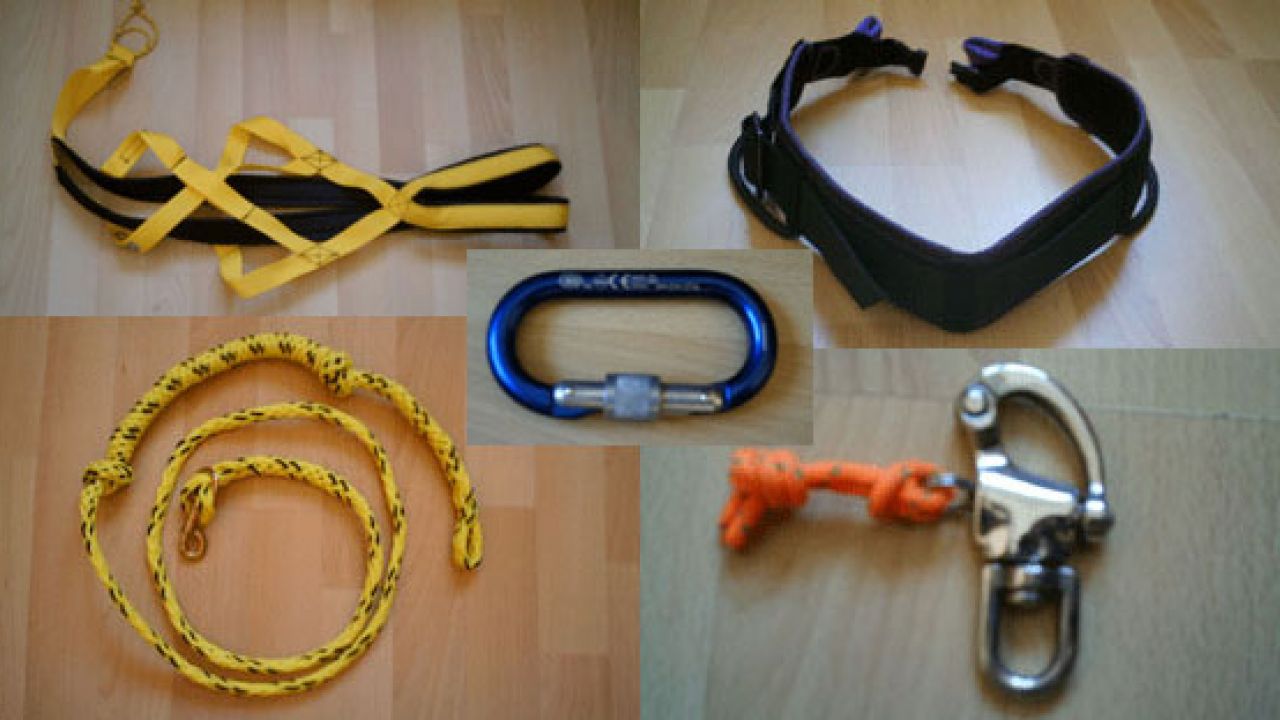 - Correa, linga o linea semielastica que se conecta del cinto mediante un mosquetón semiautomatico (para facililar su rápido desenganche) al pretal del perro y que permite mediante movimientos ondulatorios y oscilantes disminuir la resistencia ejercida por el peso del humano y generar una tracción mas eficiente y sostenida.